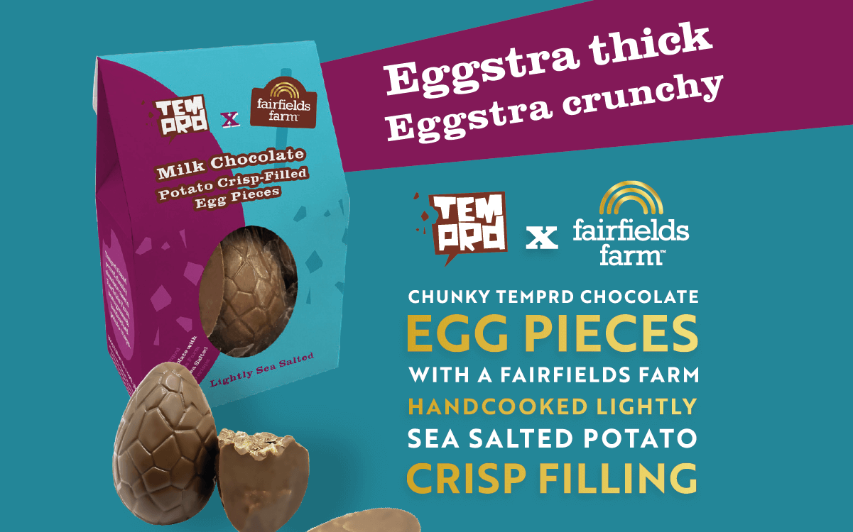 Irresistible hand-poured Temprd Milk Chocolate egg pieces with a Lightly Sea Salted Potato Crisp centre. Eggstra thick. Eggstra crunchy.